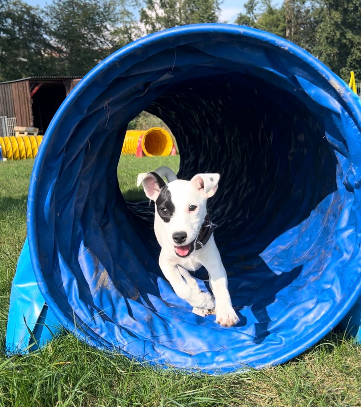 "Twix", meine geliebter Schatten und Agility Traumpartner. Der kleine kam 2018 aus der Tötung von Ungarn auf Wunsch zu mir mit knapp 5 Monaten. Auch er ist ein Top Reitbegleithund geworden und immer an meiner Seite.